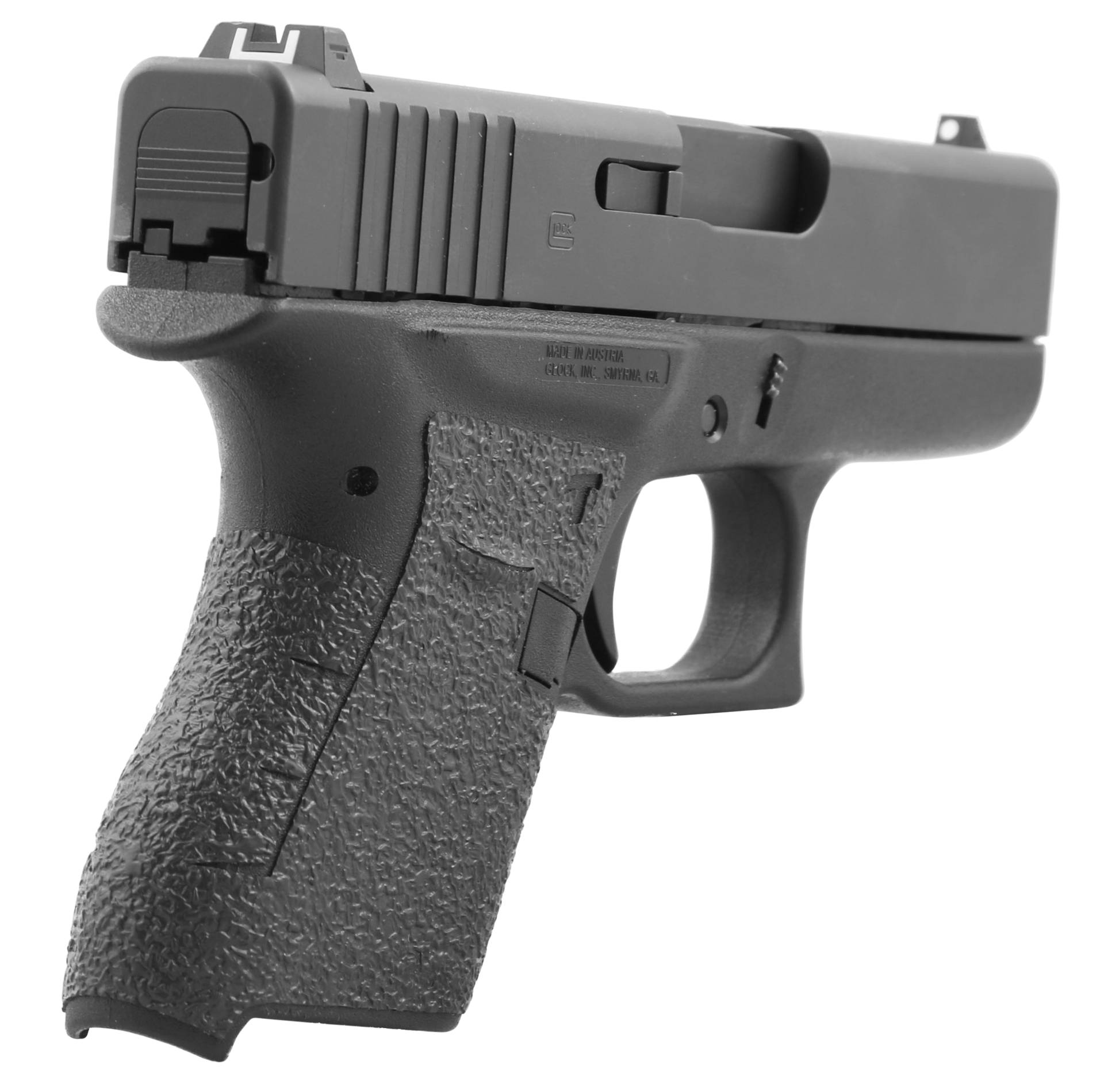 This low profile grip is custom designed and manufactured for specific firearms to provide an oem quality fit and finish, adding minimal bulk/size.Adhesive will not move once properly installed and can be easily removed with little to no residue.It is easy to install within minutes (proper installation requires a hair dryer or heat gun).Most cleaning solutions do not harm the grip (avoid aerosol-based solvents such as clp).The rubber texture provides positive grip on the firearm and is more commonly used for concealed carry (less likely to irritate skin or snag on clothing) and users with softer hands.Made in the usa.Fits the glock 43.This rear wrap grip has full coverage on the side panels including above the thumb rest, high coverage on the backstrap and full coverage under the trigger guard.This grip includes cutouts for the "glock" graphic on the shooter's left, the talon "t" on the shooter's right, and relief cuts for the thumb rest on each side.