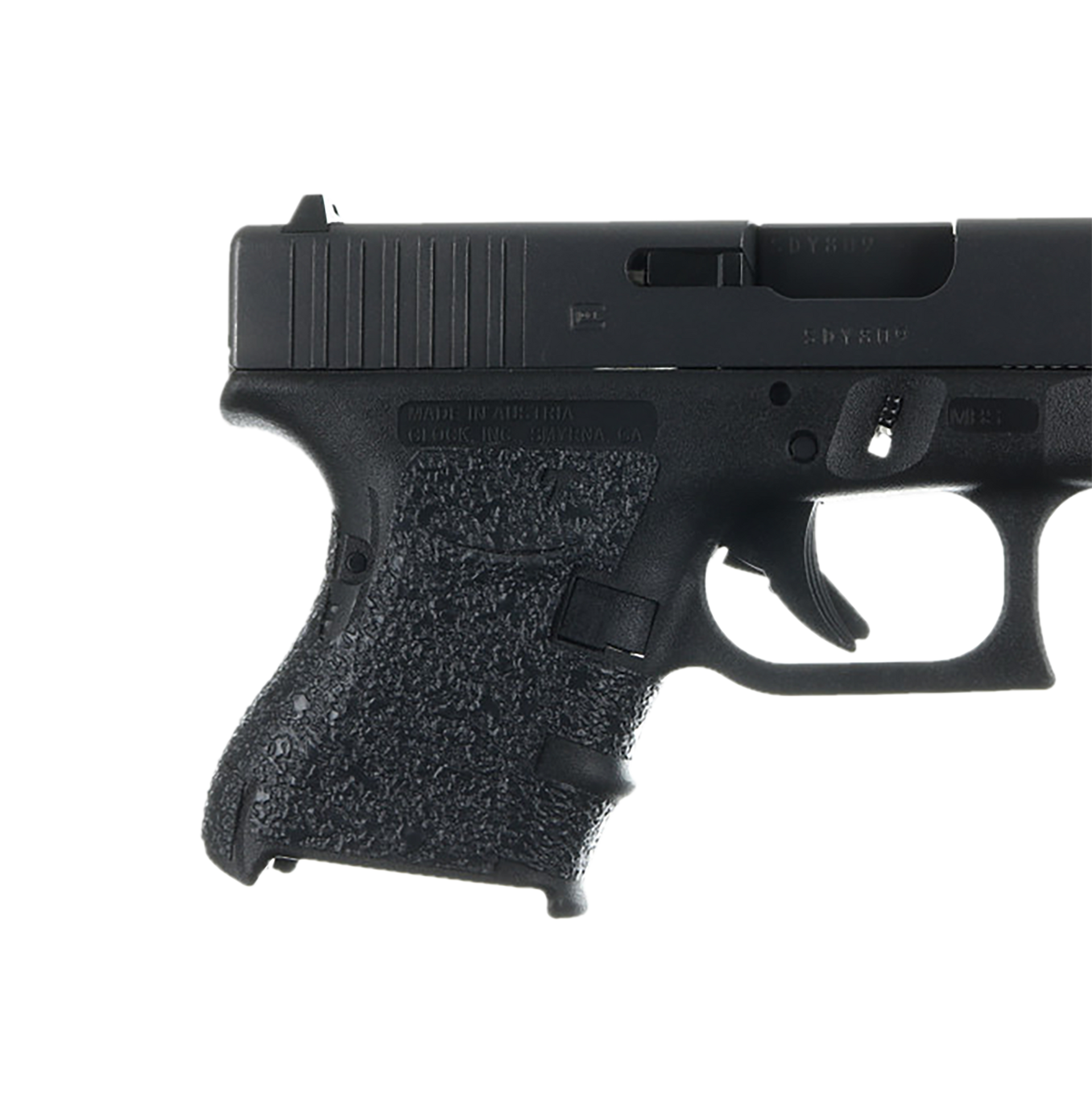 The talon glock low profile grip is custom designed and manufactured for specific firearms to provide an oem quality fit and finish, adding minimal bulk/size.Adhesive will not move once properly installed and can be easily removed with little to no residue.It is easy to install within minutes (proper installation requires a hair dryer or heat gun).The rubber texture provides positive grip on the firearm and is more commonly used for concealed carry (less likely to irritate skin or snag on clothing) and users with softer hands.Compatible with glock model 26/27/28/33/39 gen3.This grip provides full coverage on the side panels including above the thumb rest, ample coverage on the backstrap, and two finger wraps for the finger grooves under the trigger guard.This grip has a logo cutout for the glock emblem on the left side of the handle.This grip sticks extremely well even with the rough textured frame (rtf).