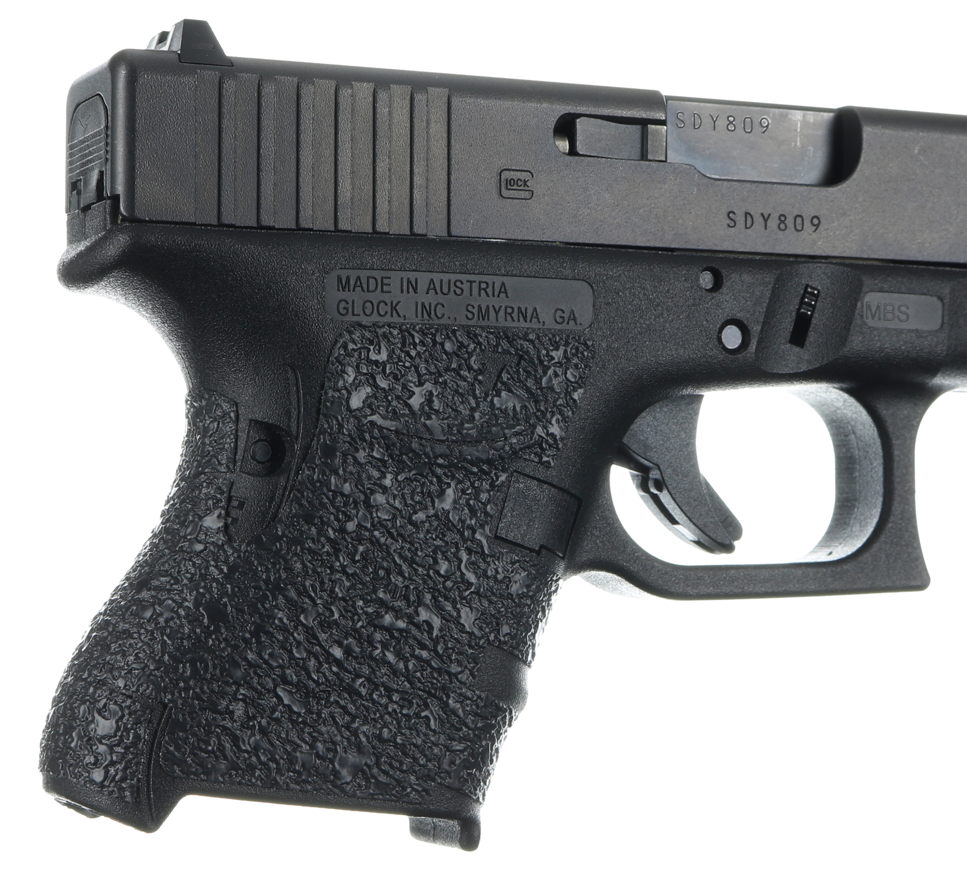 The talon low profile grip is custom designed and manufactured for specific firearms to provide an oem quality fit and finish, adding minimal bulk/size.Adhesive will not move once properly installed and can be easily removed with little to no residue.It is easy to install within minutes (proper installation requires a hair dryer or heat gun).The rubber texture provides positive grip on the firearm and is more commonly used for concealed carry (less likely to irritate skin or snag on clothing) and users with softer hands.This grip provides full coverage on the side panels including above the thumb rest, ample coverage on the backstrap, and two finger wraps for the finger grooves under the trigger guard.This grip has a logo cutout for the glock emblem on the left side of the handle.Compatible with glock 26/27/28/33/39 gen4 no backstrap.