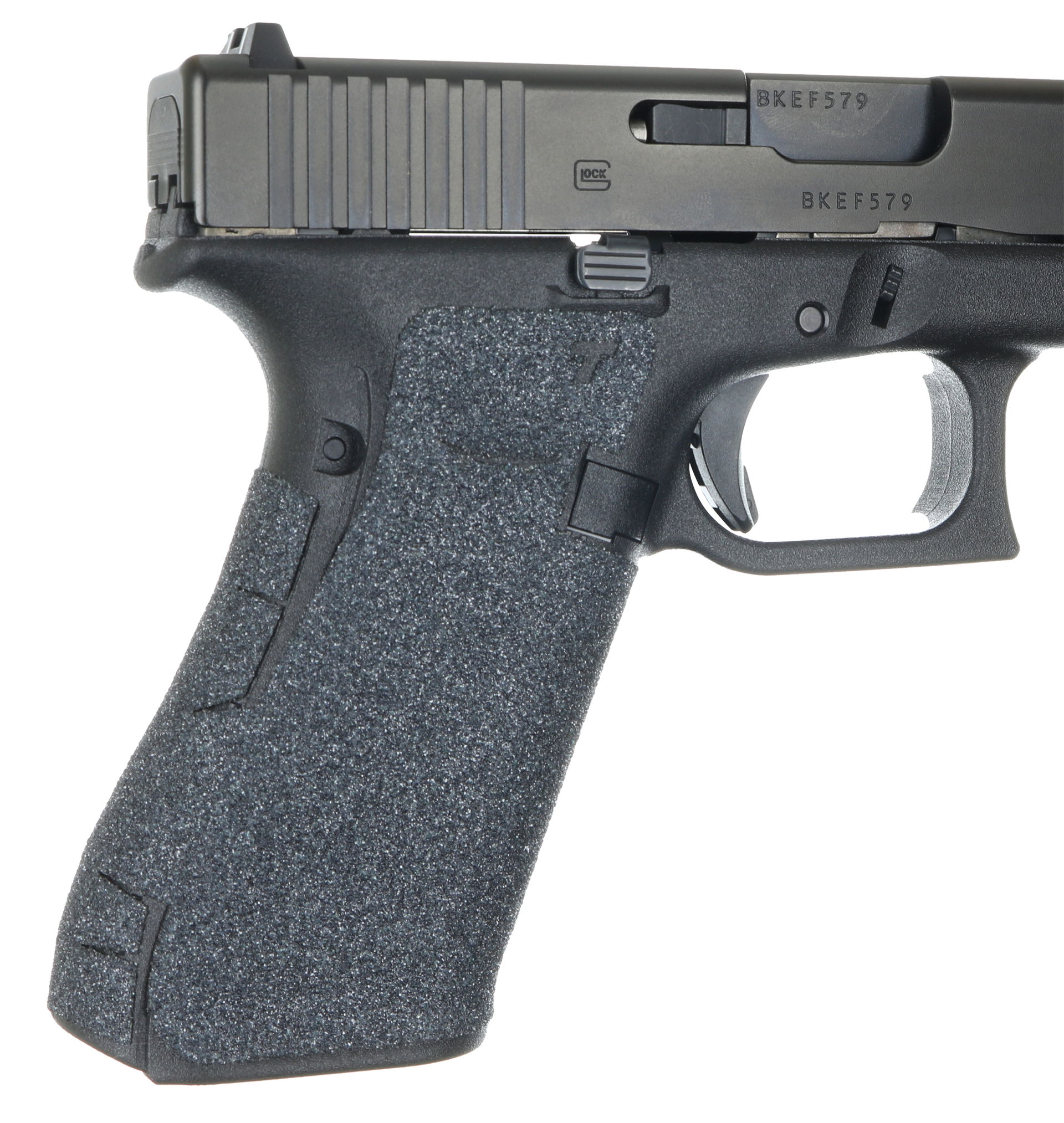 The talon low profile grip is custom designed and manufactured for specific firearms.This rear wrap grip is constructed of a textured granulate and offers full side panel coverage including the thumb rest, trigger guard, and high coverage on the backstrap.Features a graphic cutout for the glock emblem, rubber texture and a black finish.Includes a cleaning pad.Compatible with 17/19x/22/24/31/34/35/37/45/47 gen5 with no backstrap