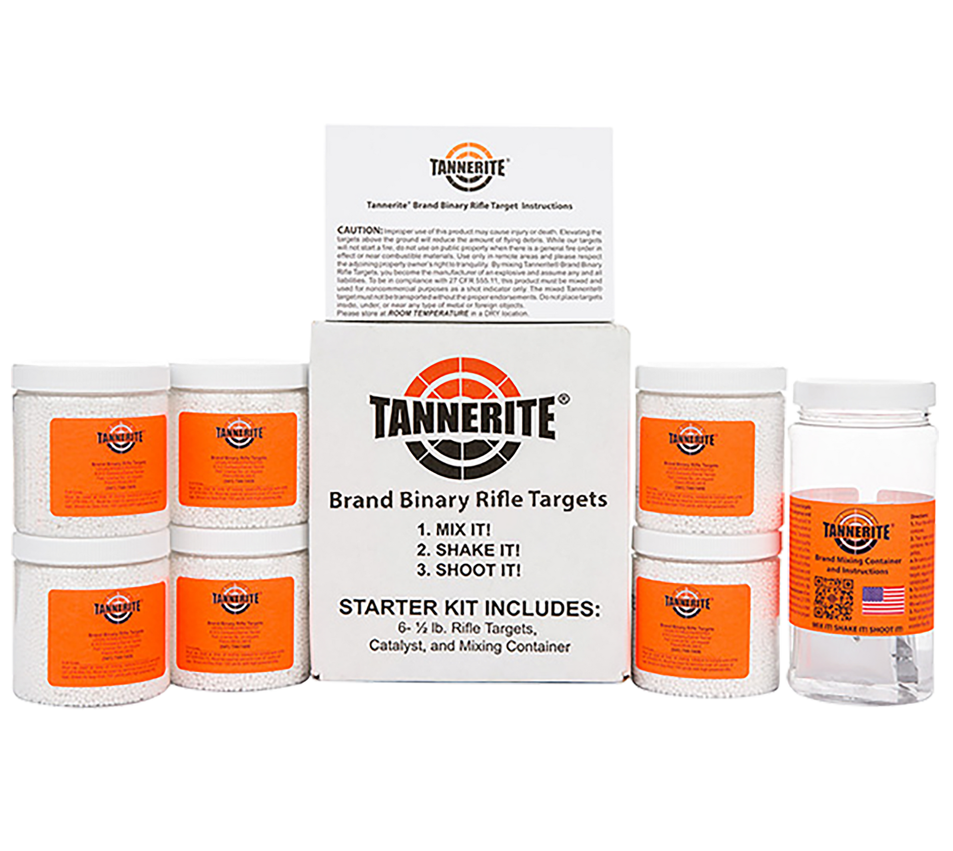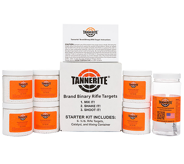 Tannerite brand targets are specifically designed to be safe and only initiated by a centerfire rifle.Tannerite is non-hazardous and can be shipped without expensive hazmat fees, it is safe and legal.The catalyst mixes easily into each 1/2 pound target.Contains 24- 1/2 lb targets, premeasured packets of catalyst, mixing container and instructions.