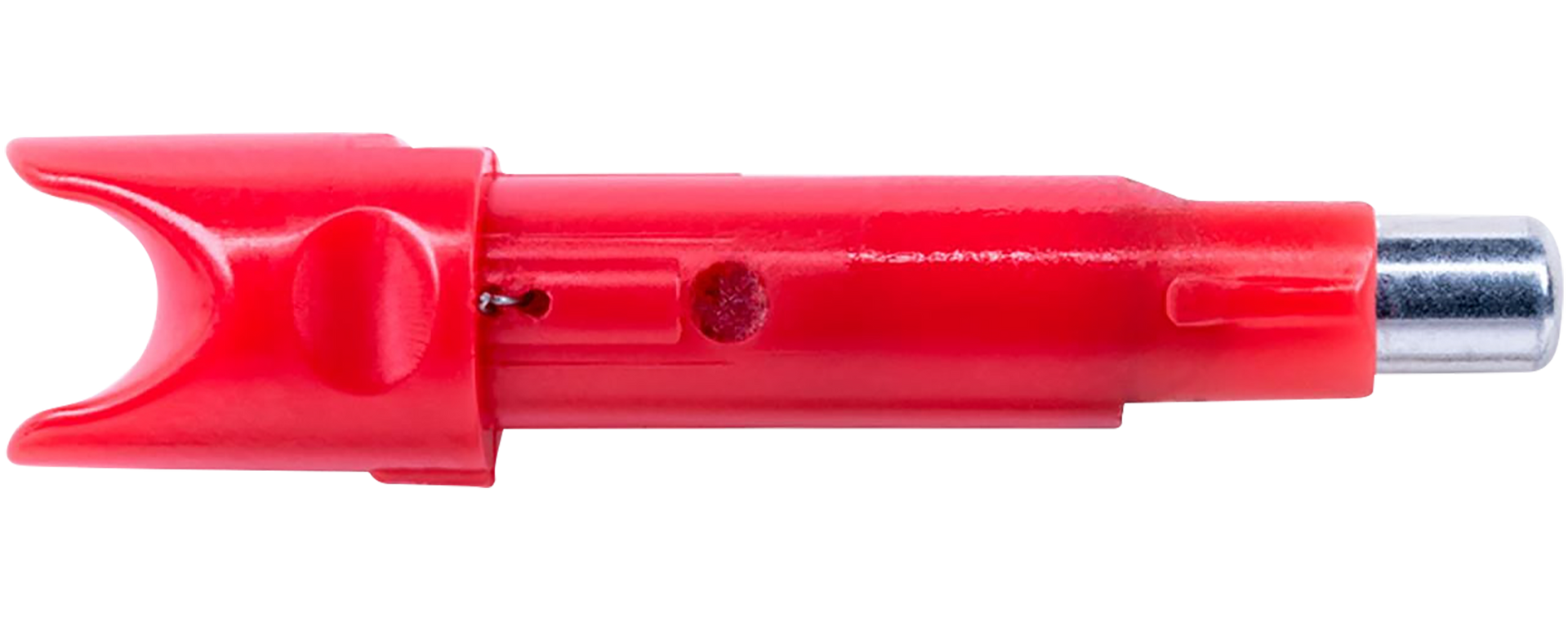 The alpha-blaze lighted nock contains a one-piece nock/led unit that is indexed with the vanes and press fits into the arrows aluminum bushing.Upon firing the crossbow, the bowstrings force compresses the two pieces and activates the lighted nock.Deactivate the easy on/off alpha-blaze lighted nock by pulling the nock straight out until the light turns off.The led light of the alpha-blaze system lasts for approximately twenty-four hours when activated.
