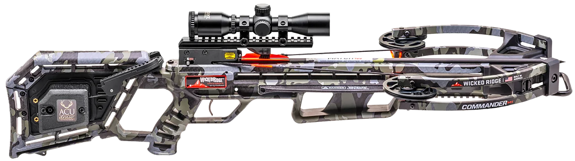 Built to perform in tight shooting situations thanks to its narrow profile, the commander m1 is equipped with a multi-line scope and 3.5-lb.Trigger.Plus, with the acudraw, the acudraw is fully integrated into the crossbow, so you never need to worry about forgetting your cocking rope! includes: acudraw cocking device, multi-line scope, 3 match 400 carbon arrows and quiver.