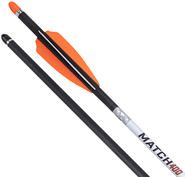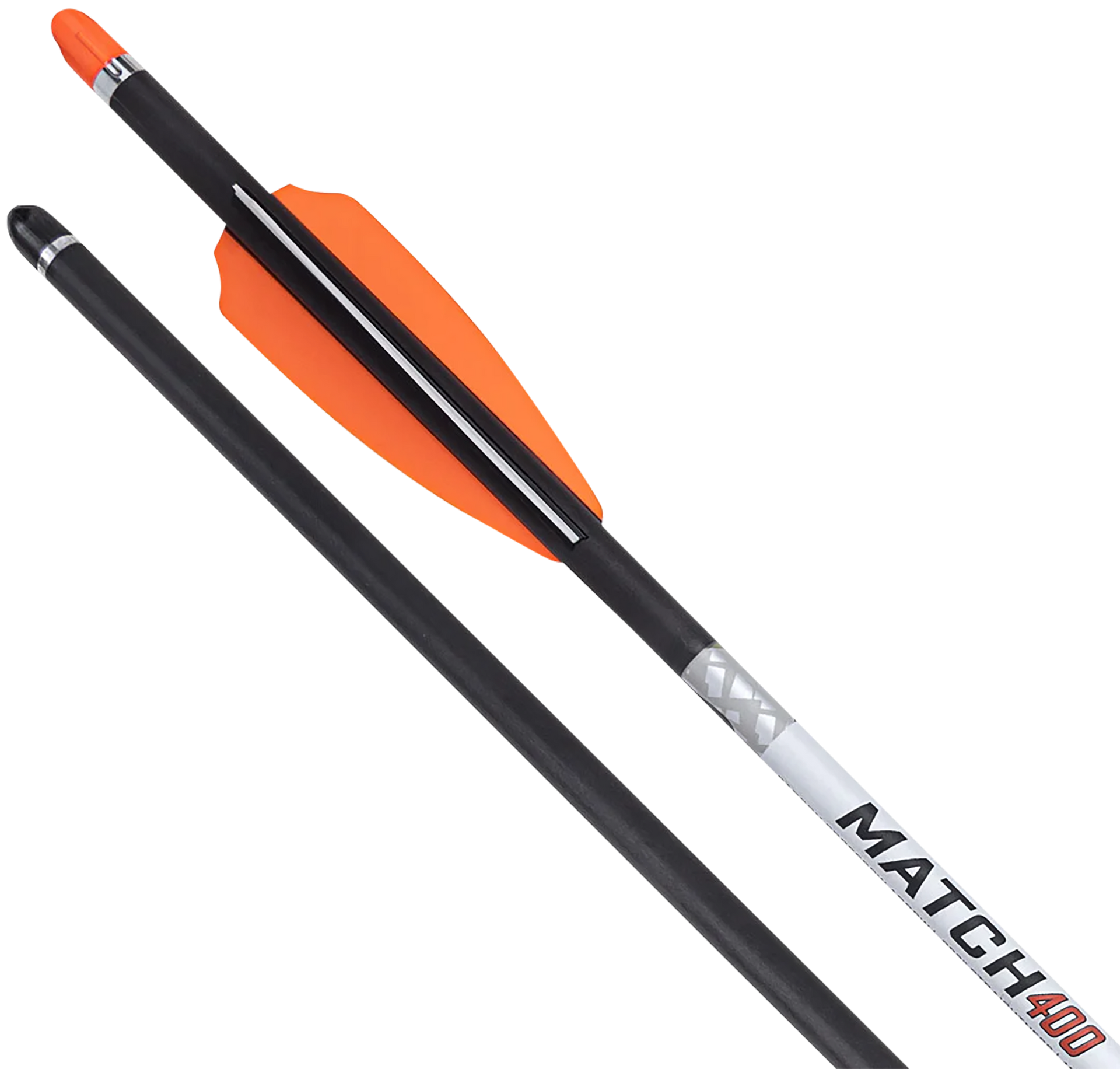Match 400 20-inch carbon arrow.Fletched slightly offset and is fitted with 3 fusion x-ii vanes and the alpha-nock hp & hp bushing.Match 400 shafts are inspected for straightness to within.004 and hand-sorted for weight tolerance to within 2-grains per dozen.