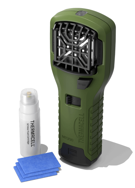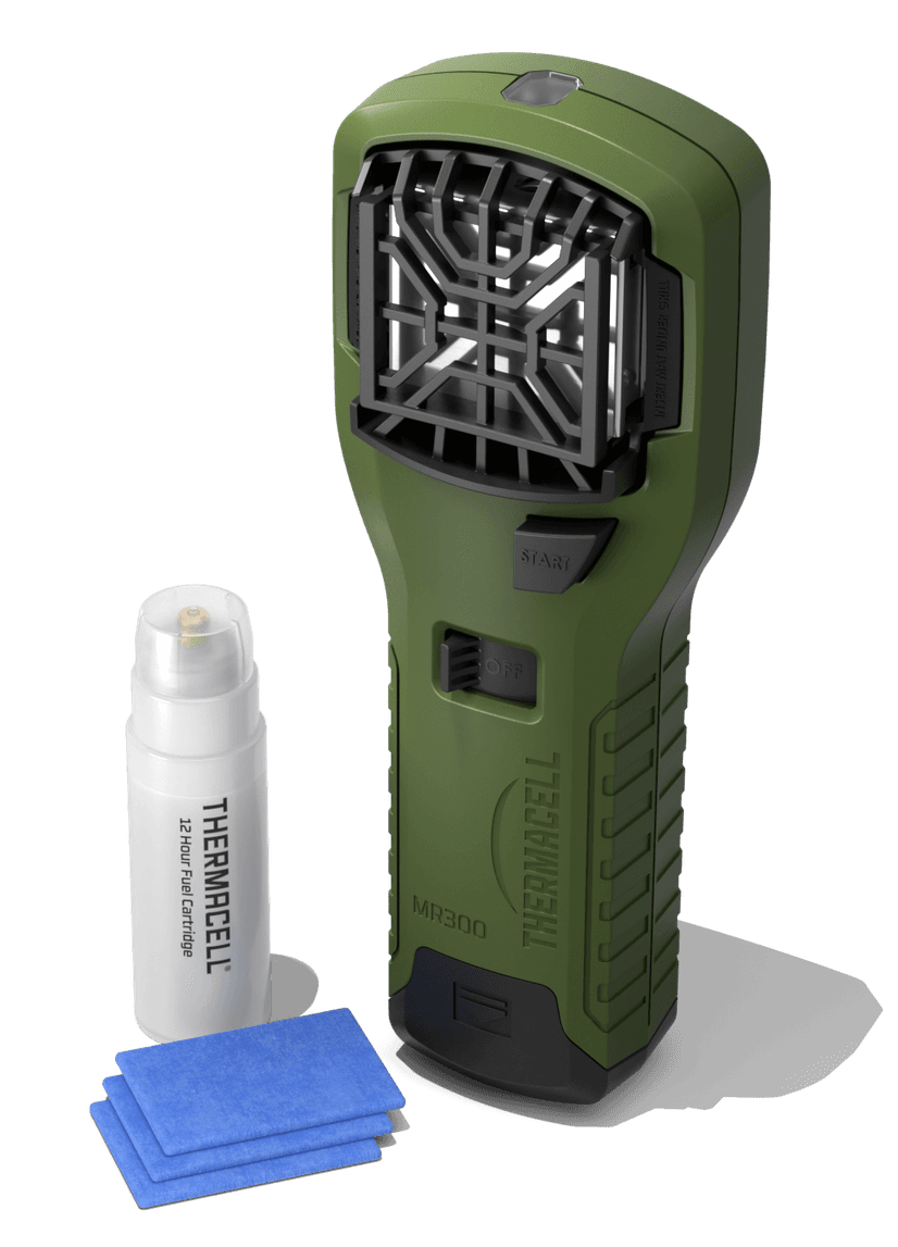 The thermacell mr300 portable mosquito repeller effectively repels mosquitoes by creating a 15 ft protection zone.The mr300 repeller can be taken virtually anywhere outdoors to repel pesky mosquitoes, stopping them before they can bite or bother you.Features include- quiet ignition, reengineered grill and switch, improved ergonomics and accessory mounting system.Portable and lightweight, no spray and no mess.Scent-free and deet-free.Package contains-1 mr300 repeller and 12 hours of refills - 3 repellent mats and 1 fuel cartridge.