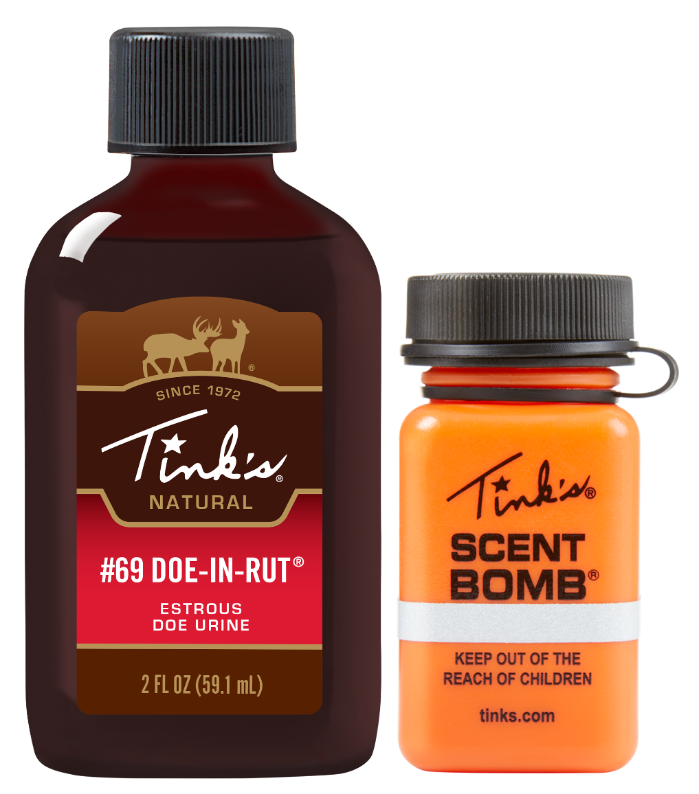 A great buy for the avid whitetail deer hunter! featuring a 2-ounce bottle of tinks #69 doe-in-rut buck lure and a 1-ounce scent bomb.Pour the lure into the included scent bomb to soak the wick, then hang for all-day attraction.Tinks #69 doe-in-rut buck lure is 100% natural doe estrous urine collected from live whitetail does during their estrous cycle.Tinks quality controlled formula keeps tinks #69...View more