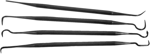 Here is a clever idea that belongs in every cleaning kit, gun cleaning picks.This set of four picks with different configurations on each end provide eight different combinations to get into those tight, hard-to-reach places.One set is made of high-strength polymer so they will not scratch the finest surface.The other set is made of stainless steel.