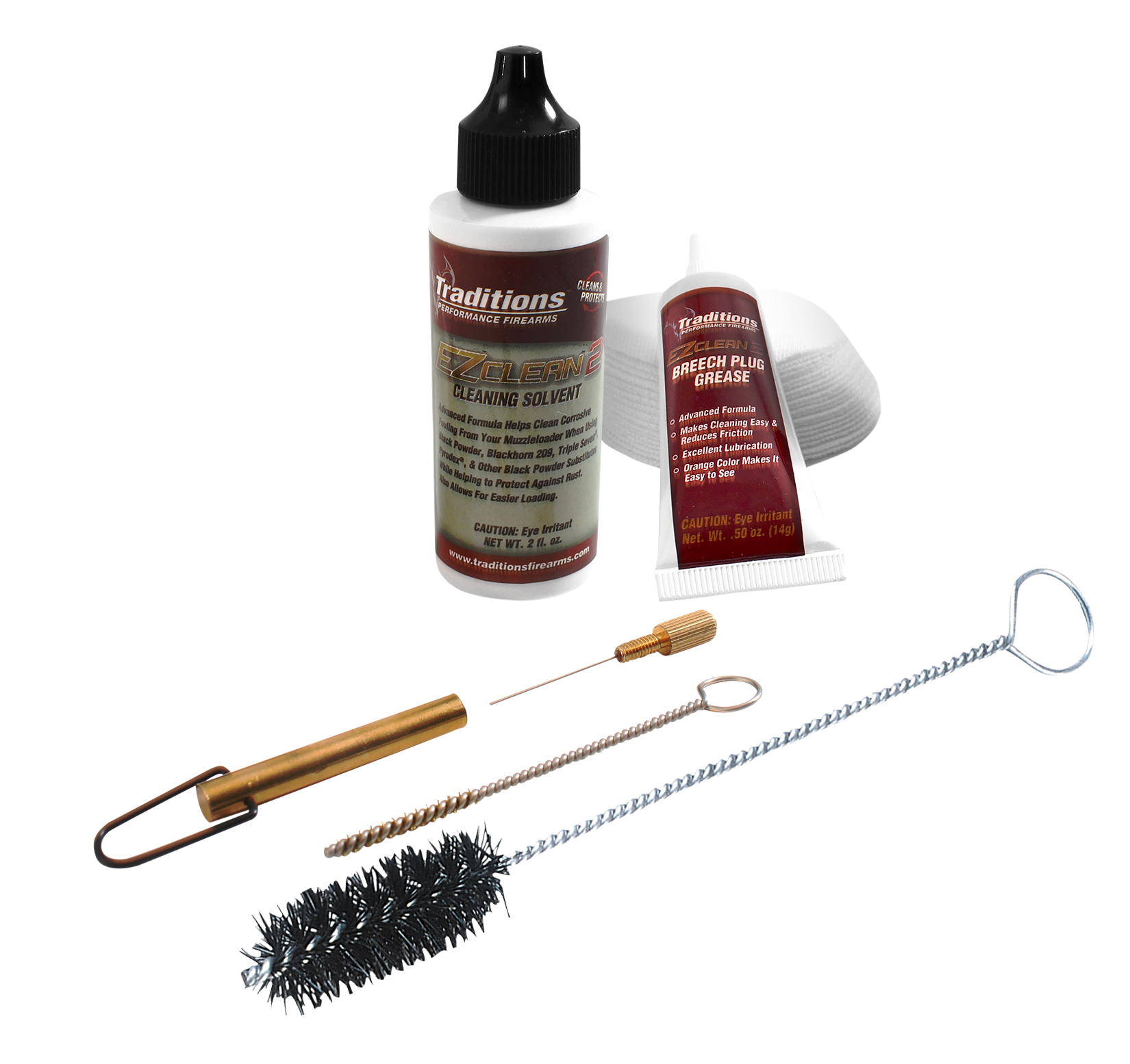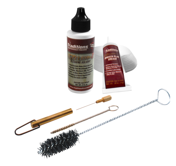 The traditions breech plug cleaning kit contains: ez clean 2 cleaning solvent, ez clean 2 breech plug grease, nylon breech brush, fire channel brush, universal cleaning pick, and dry cleaning patches.Type: Breech Plug CleanerSize: .50 CalPieces: 6Bristle Type: NylonIncludes: Brushes/Cleaner/PatchesHazair: YesView more