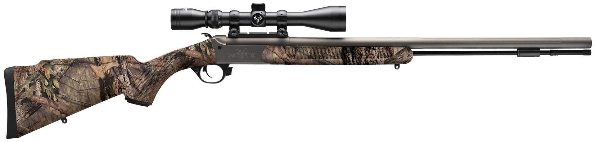 Traditions nitrofire vapr with 3-9x40 duplex scope featuring a 1:24" vapr twist, has a 26" chromoly steel fluted and tapered barrel.The nitrofire is also equipped with traditions elite xt trigger system.The elite xt trigger is a crisp, clean breaking trigger optimized for hunting and features a rebounding hammer and cross block trigger safety.Uses the federal premium firestick.Includes 3-9x44 duplex scope mounted & boresighted.Action: Break OpenCaliber:...View more