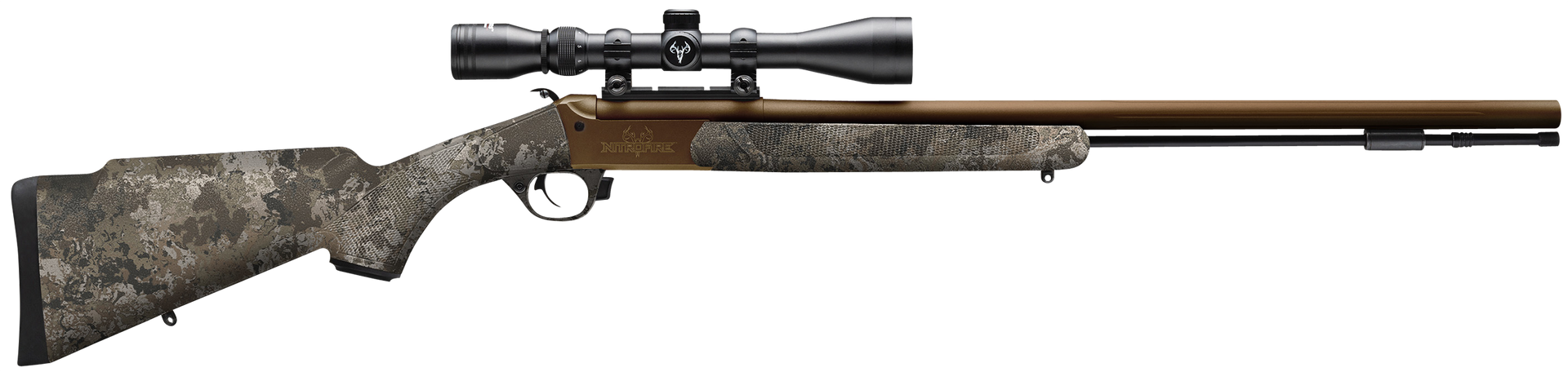 Traditions nitrofire vapr with 3-9x40 duplex scope featuring a 1:24" vapr twist, has a 26" chromoly steel fluted and tapered barrel.The nitrofire is also equipped with traditions elite xt trigger system.The elite xt trigger is a crisp, clean breaking trigger optimized for hunting and features a rebounding hammer and cross block trigger safety.Uses the federal premium firestick.Includes 3-9x44 duplex scope mounted & boresighted.Action: Break OpenCaliber:...View more