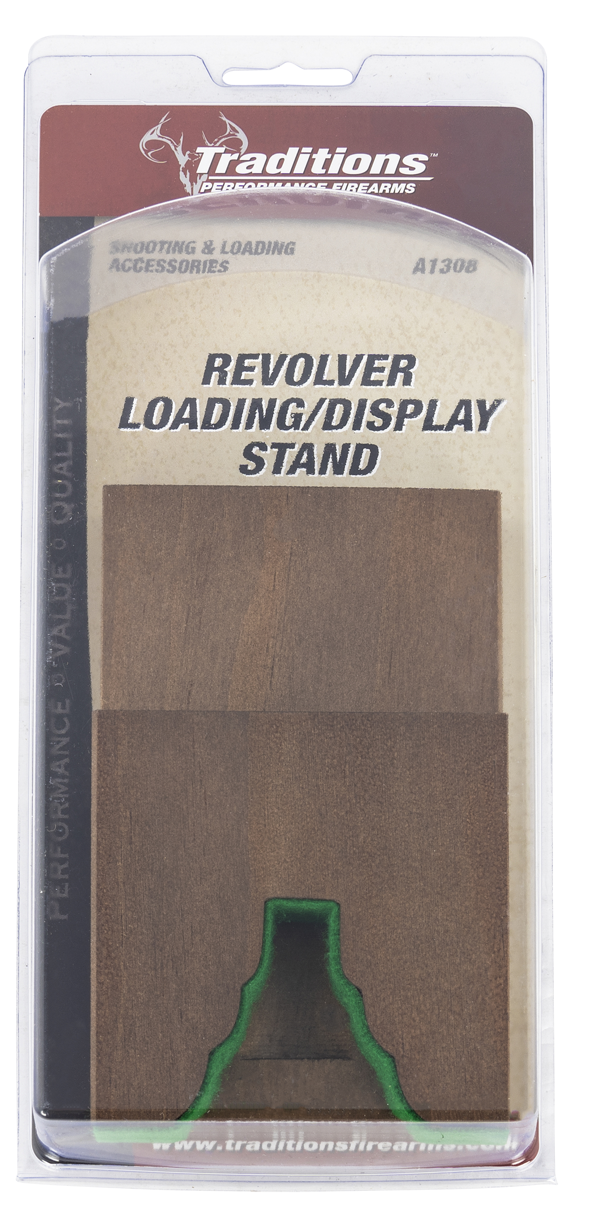 A good looking and convenient way to display and load your cap and ball revolver.Pistol grip rests securely in wooden base while felt-lined wooden upright support back strap securely.Positions cylinder to rotate and face upward for easy loading.Loading stand collapses for easy storage.Fits 1851, 1860 and 1858 revolvers.