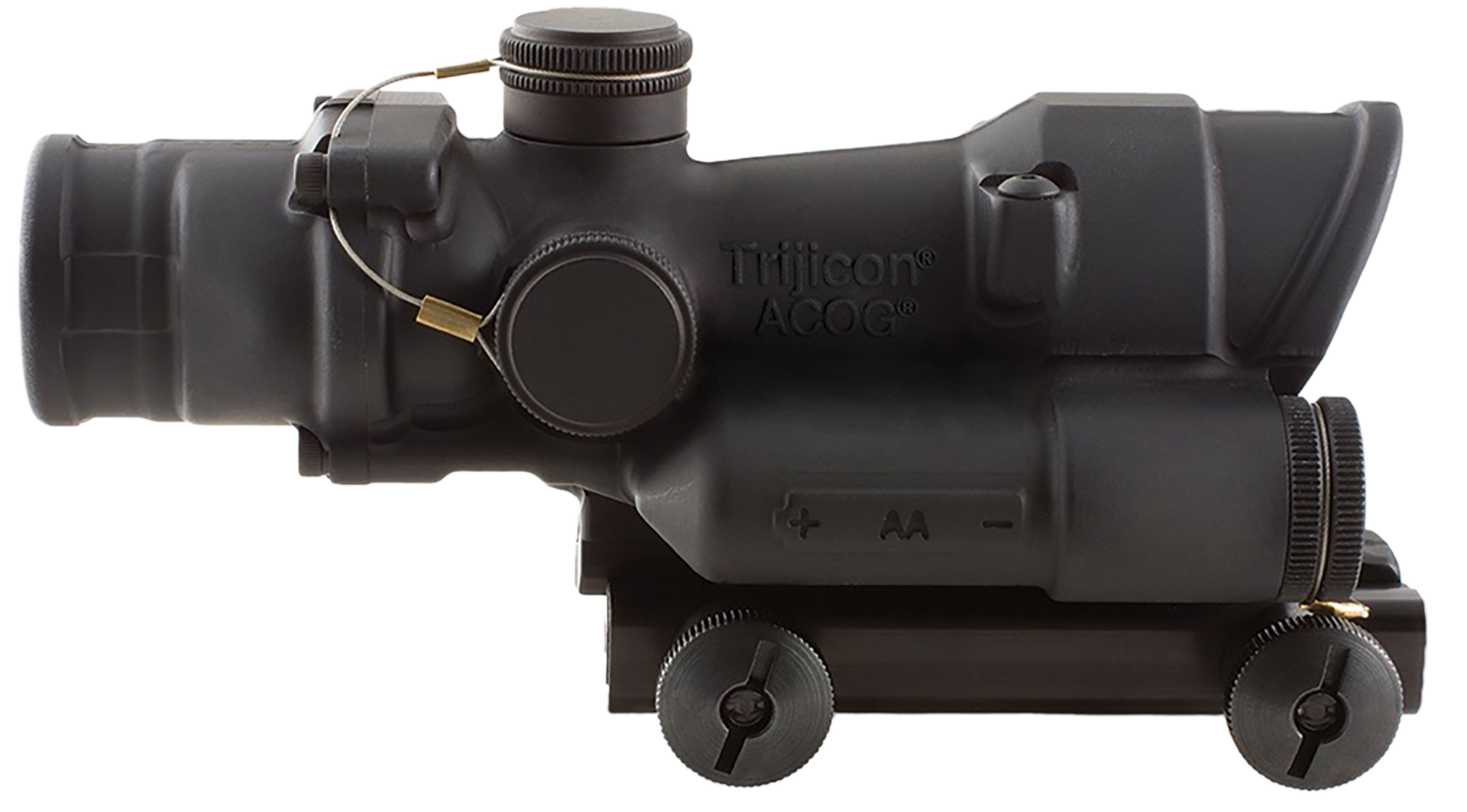 Trijicon's acog is a fixed power, compact riflescope with an illuminated reticle pattern for use in bright to low/no light with legendary durability and reliability.Featuring forged 7075-t6 aircraft-aluminum-alloy housing, multi-coated lenses, fog/waterproof and shock-resistant, proven to withstand recoil from 22lr up to 50 bmg, and easily passes u.S.Military drop test requirements.Includes a thumbscrew flattop adaptor, aa battery, lenspen, lanyard assembly for adjuster caps and battery...View more