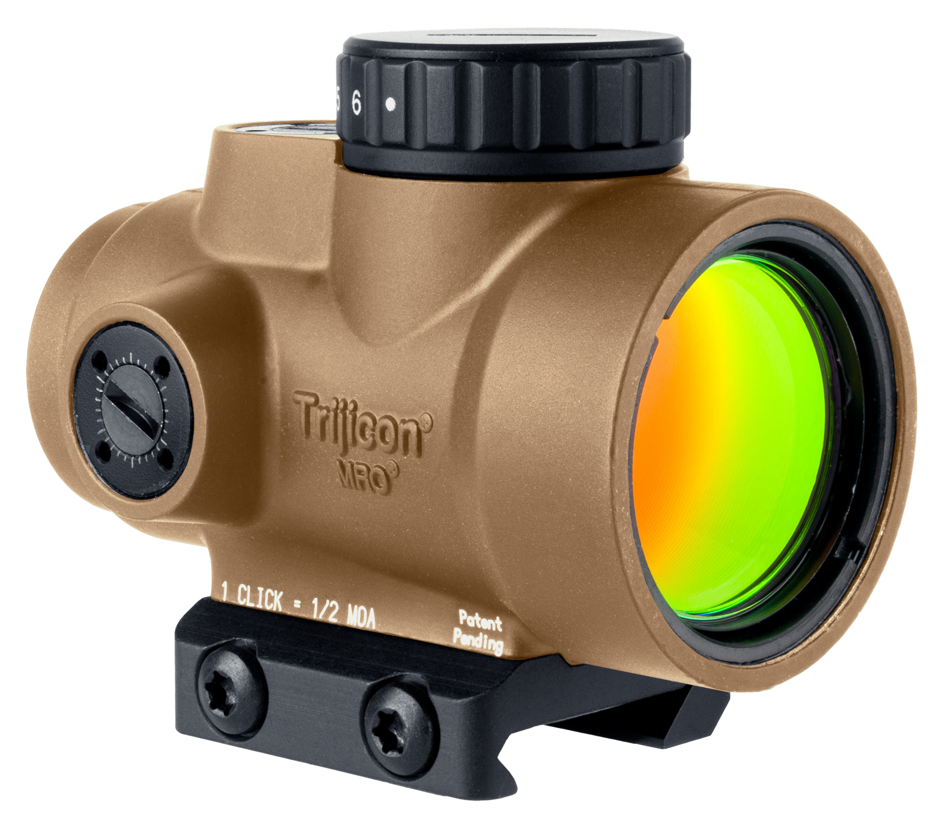The trijicon mro series features a large aperture maximizing the viewing area, allowing for better situational awareness and fast target engagement.It also features ambidextrous brightness controls, sub-flush adjusters, advanced lens coatings, and a fully sealed, waterproof, hard anodized forged 7075-t6 housing, making the mro the ultimate mini reflex sight.