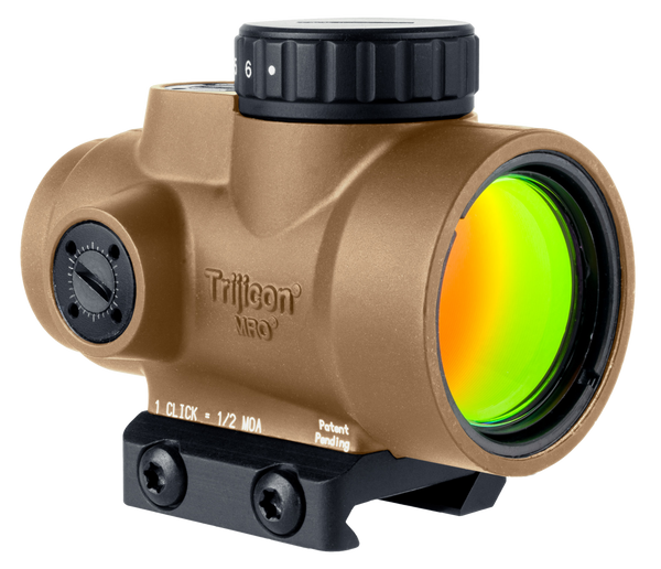 The trijicon mro series features a large aperture maximizing the viewing area, allowing for better situational awareness and fast target engagement.It also features ambidextrous brightness controls, sub-flush adjusters, advanced lens coatings, and a fully sealed, waterproof, hard anodized forged 7075-t6 housing, making the mro the ultimate mini reflex sight.