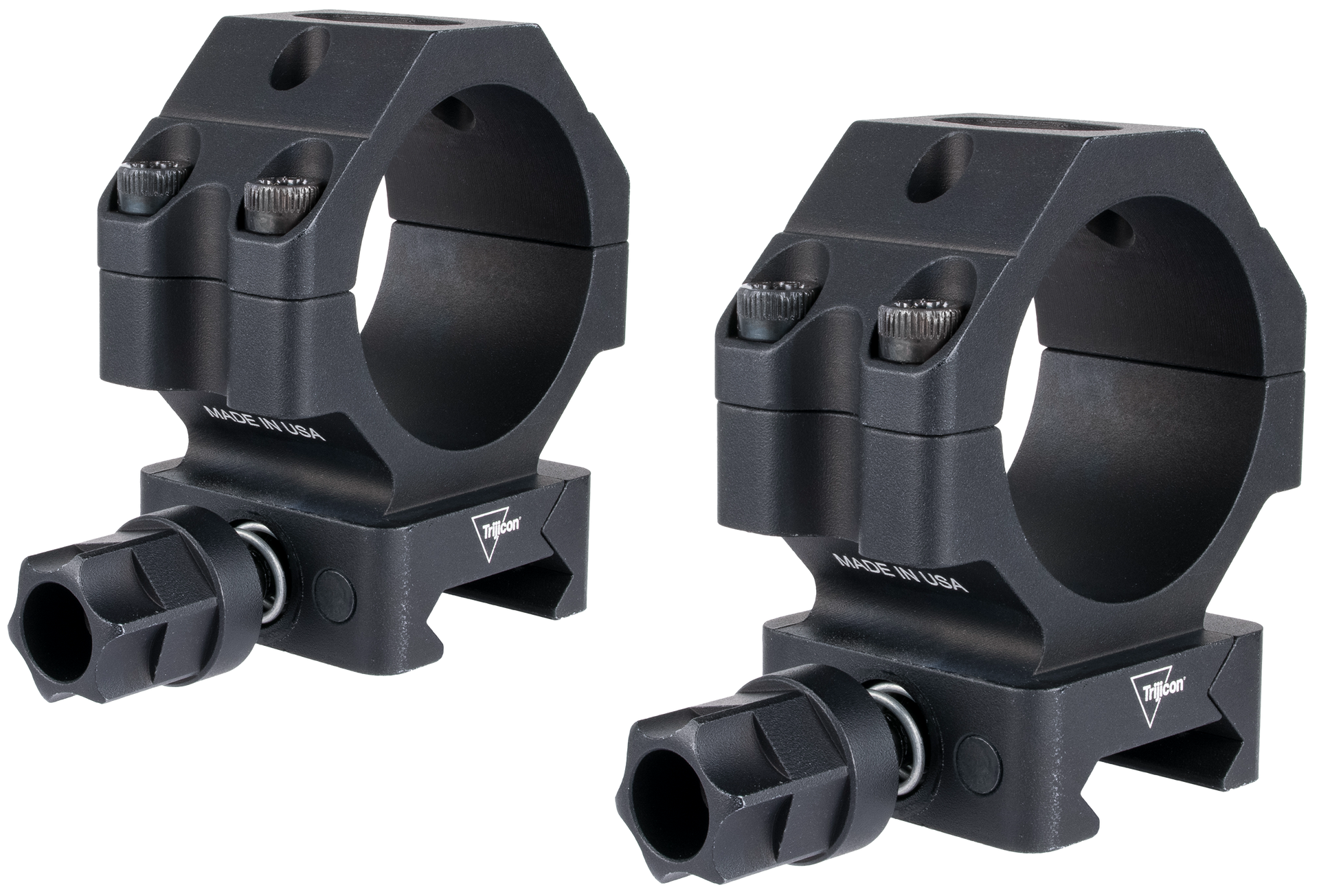 Trijicon ring mounts w/ q-loc technology feature a 34mm tube, and are designed to keep the optic as low as possible for hunting and long range precision rifle applications.Featuring a mil-spec drop test rated 6061-t6 aluminum design and an easy to use one handed tool less mounting system.The spring-loaded design allows for constant retention and maintaining of zero even if the knobs are not tightened.The ring mounts boast a low profile design with superior return to zero performance and are compatible with any mil-spec or nato picatinny rail.Designed specifically for variable power optics, these rings are perfect for mounting trijicon variable power optics with an objective lens up to 44mm on any weapon platform with a full picatinny rail.