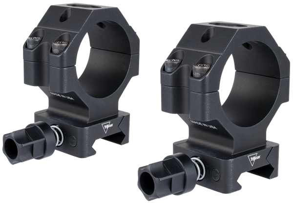 Trijicon ring mounts w/ q-loc technology feature a 34mm tube, and are designed to keep the optic as low as possible for hunting and long range precision rifle applications.Featuring a mil-spec drop test rated 6061-t6 aluminum design and an easy to use one handed tool less mounting system.The spring-loaded design allows for constant retention and maintaining of zero even if the knobs are not tightened.The ring mounts boast a low profile design with superior return to zero performance and are compatible with any mil-spec or nato picatinny rail.Designed specifically for variable power optics, these rings are perfect for mounting trijicon variable power optics with an objective lens up to 50mm on any weapon platform with a full picatinny rail.