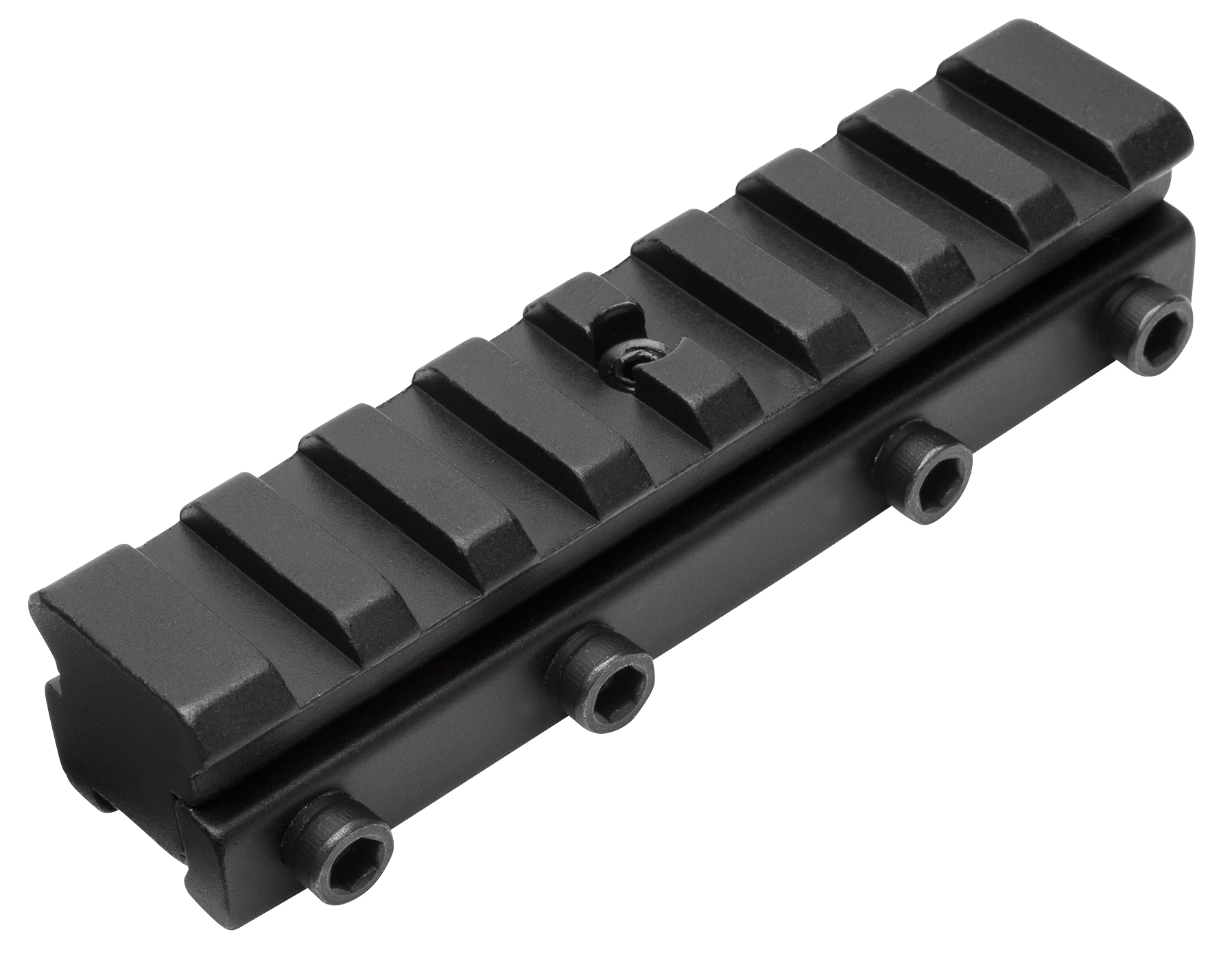 This riser mount attaches to existing picatinny rails.Features integrated recoil lug.Ideal for mounting scopes or dot optics.Type: 1-Piece BaseModel: 3/8 In. to Picatinny Mounting AdapterStyle: 3/8" to Picatinny Conversion AdapterMisc: .38"Finish: BlackMaterial: AluminumPieces: 1Mount Type: Picatinny Rail/WeaverRings Included: NoView more