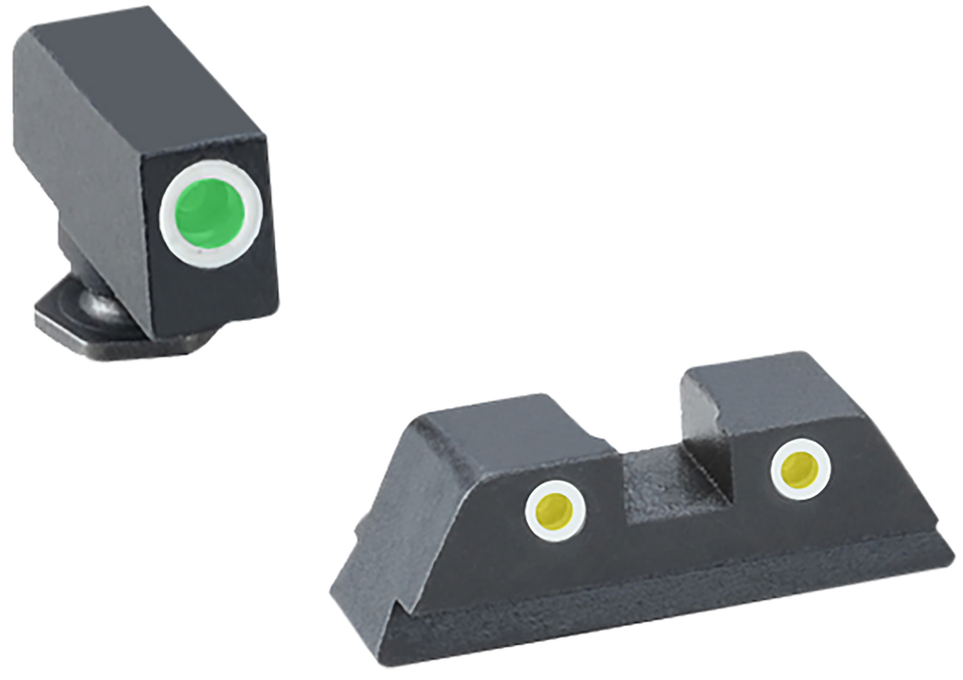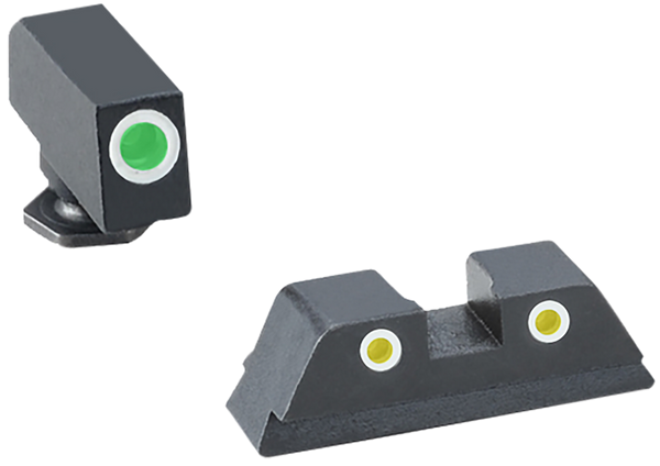 Tritium night sights transition from standard white dot sights during the daylight, to glowing green dots in the dark.Tritium does not need batteries.Fits most standard holsters.Front sight length: 1.0".Front sight width: 1.0".Front sight height: 1.0".Rear sight length: 1.0".Rear sight width: 1.0".Rear sight height: 1.0".Compatible w/glock 42/43/43x/48 except mos.