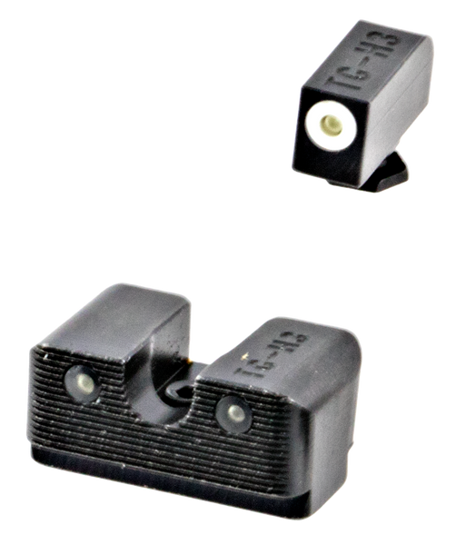 Tritium night sights transition from standard white dot sights during the daylight, to glowing green dots in the dark.Tritium does not need batteries.Fits most standard holsters.Front sight focuslock ring for even faster focus.Fits most standard holsters.Front sight length: 1.0".Front sight width: 1.0".Front sight height: 1.0".Rear sight length: 1.0".Rear sight width: 1.0".Rear sight height: 1.0".Compatible w/glock 20/21/25/29/30/31/32/37/40/41 except mos.