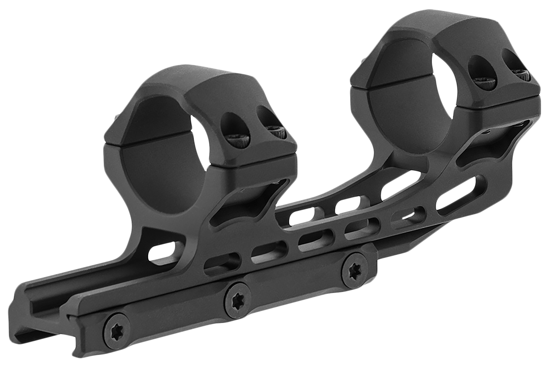 The utg accu-sync 30 mm picatinny cantilever mount is designed to securely mount 30 mm tube optics onto a picatinny rail.Key features include a 50 mm offset and high profile design, with a 22 mm saddle height and 100 mm base length, making it ideal for mounting larger optics with an outer objective diameter of up to 73 mm.Precision cnc-machined from aircraft-grade aluminum and finished with a matte anodized coating, this mount is built for durability and corrosion resistance.It includes lightening cuts that reduce weight without sacrificing strength.The mount is designed with radiused edges to prevent snags and scratches, while offering easy access to the scopes windage and elevation turrets.The mount features locking torx screws and square-shaped recoil stops for a secure fit, ensuring a zero hold and optimal alignment.This mount is designed for reliable performance in tactical, hunting, and competitive shooting setups.