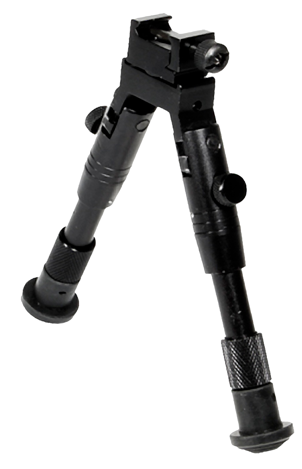 Leapers shooter's swat bipod is made of aluminum with a black finish.It has dual mounting, a posi-lock, and a rubber feet.