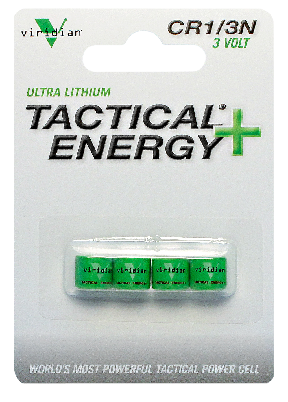 Viridian tactical energy + batteries deliver the power to prevail when it counts.Advanced lithium technology, matched to the demands of tactical tools, ensures stronger, longer-lasting energy under all conditions.Our batteries have up to 31% longer battery life than name brand batteries.Optimized for critical and combat use.Compatible with reactor and e series models.