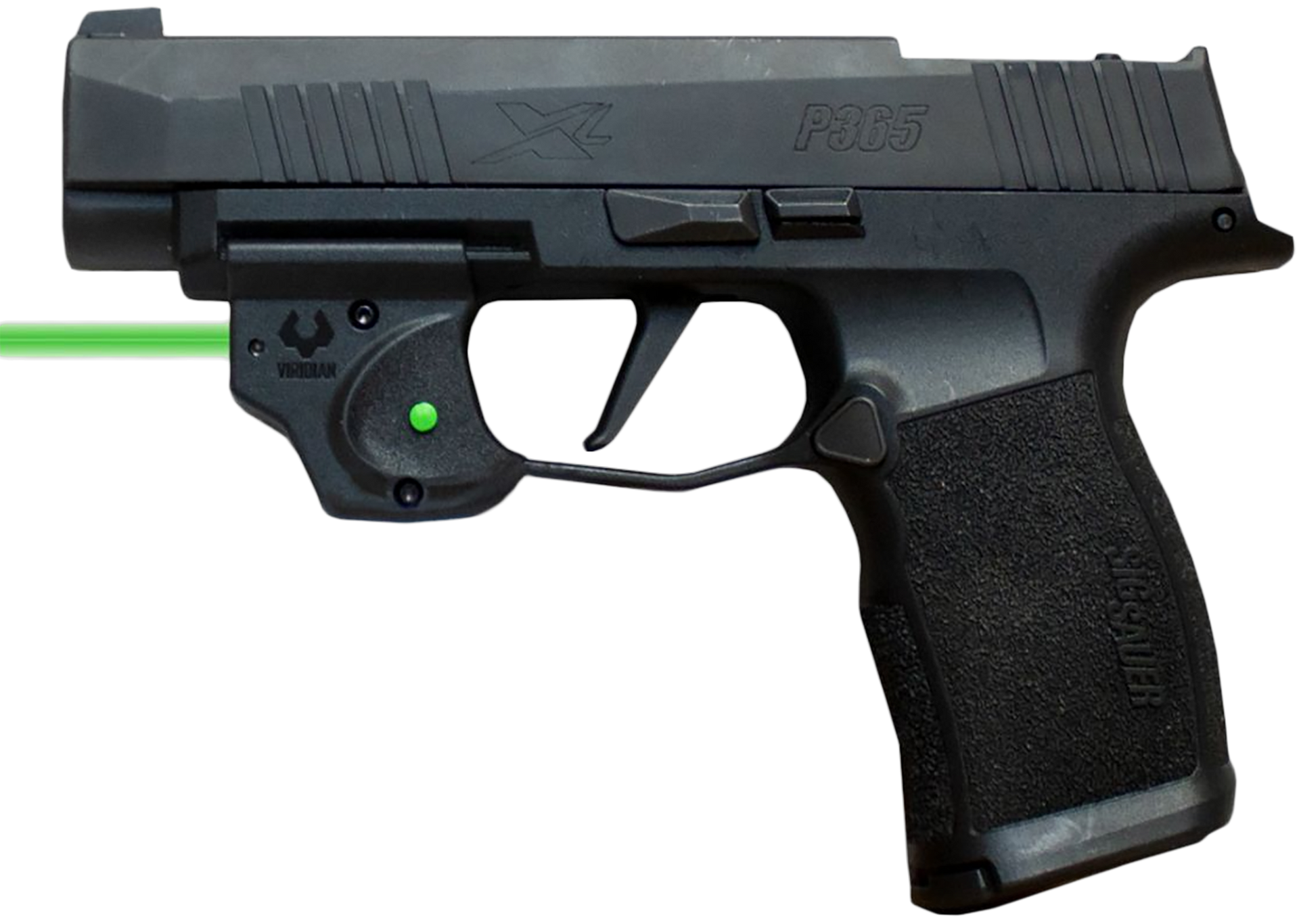 Viridian's e series laser sight is specifically designed for the everyday conceal and carry owner.This model specific, trigger guard mounted, laser sight offers the most powerful green laser legally available, delivering rapid target acquisition when you need it most.Features easy installation onto the trigger guard of your pistol; ambidextrous on/off button with 5 minutes auto shut off; 100 yard range in daylight and two miles at night; easy windage and elevation adjustment.Fits the sig sauer p365.