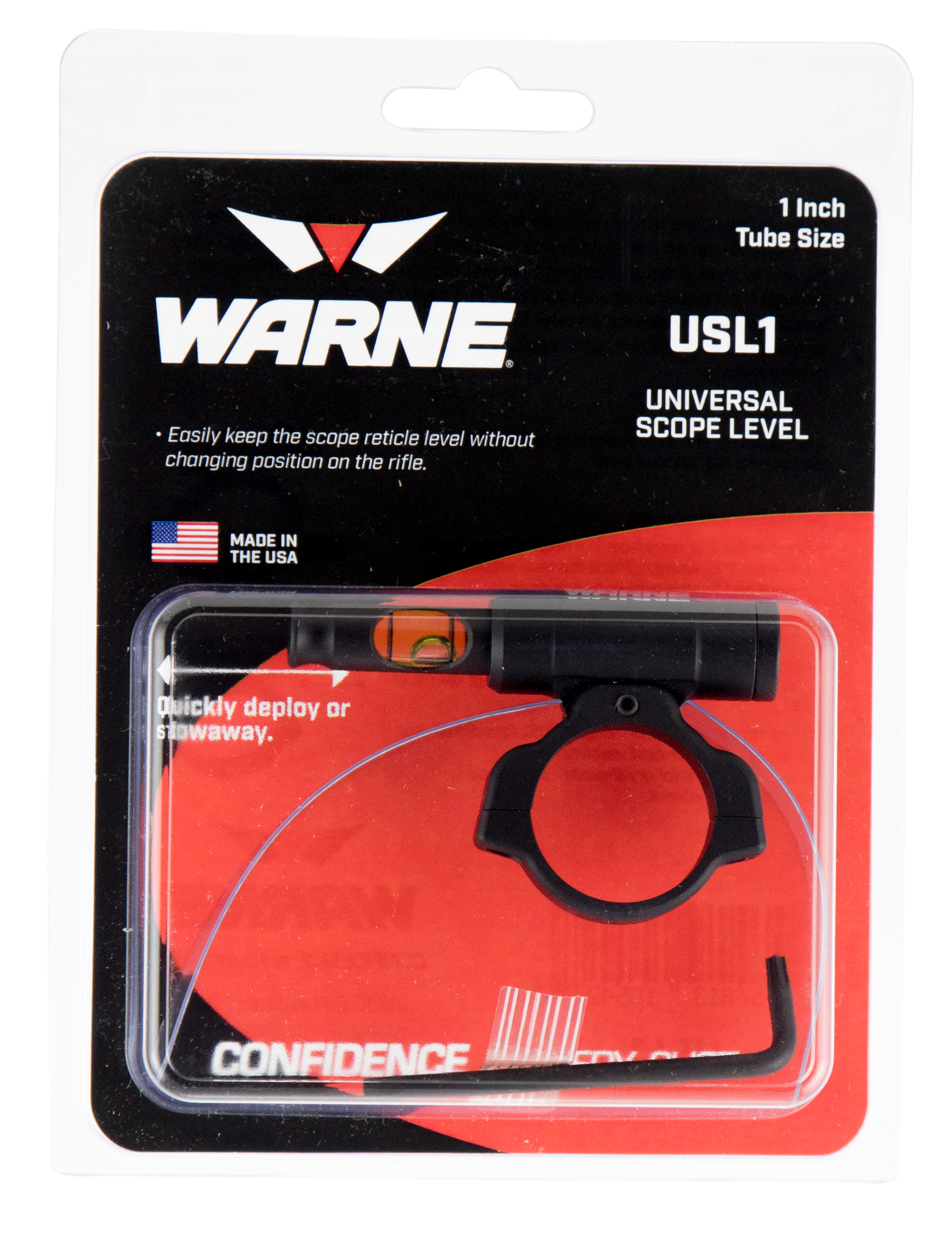 Warnes skyline universal scope level allows shooters to easily keep the reticle level without changing their position on the rifle.Whether moving through thick brush or storing your rifle in a case or scabbard, our patent pending design allows the shooter to deploy or stow the indicator with a simple push or pull.Easily attaches to your scope tube for right or left hand configurations.