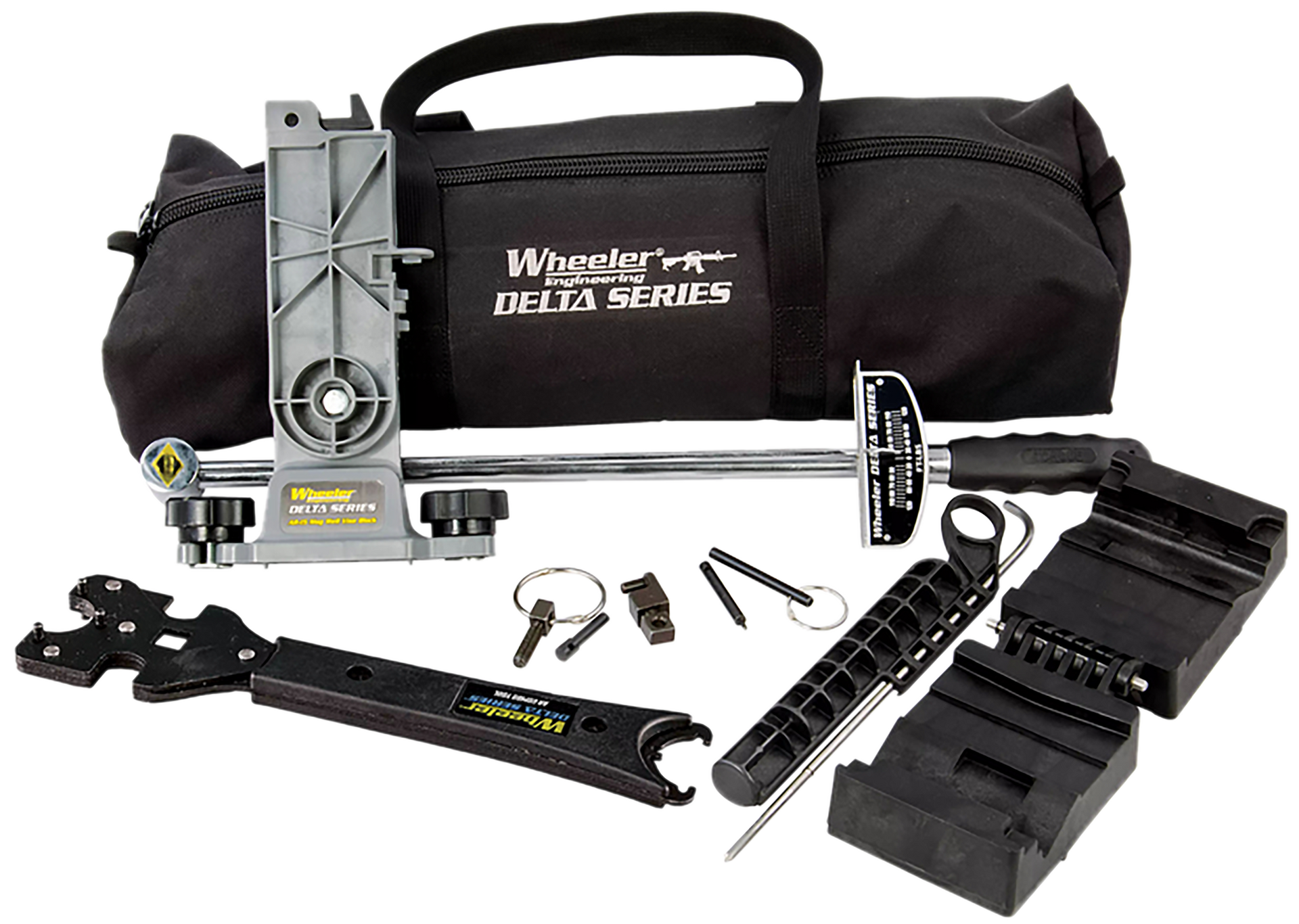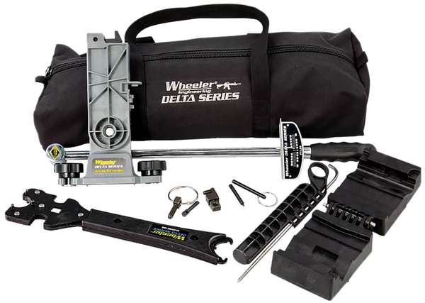 The wheeler ar armorers essentials kit contains all of the essential tools to complete a full rifle build, or make repairs or perform normal maintenance on ar-15/m16 platform rifles.Each of these tools is designed with application specific features to perform specific functions with precision and ease.All of the tools fit inside the durable carry case for storage and transport.The 7-piece essentials kit includes: ar15 combo tool, torque wrench, upper vise block clamp w/ gas tube alignment tool, pivot pin and roll pin installation tool, mag well vise block, ar -15 adjustable receiver link and a custom fitted carrying case.