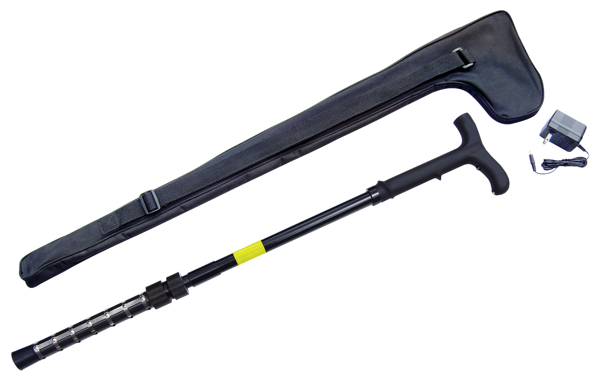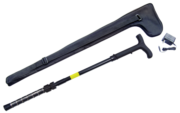 The zap cane is a stun cane with a light, so you can steady yourself, light your way and be ready to protect yourself with 1 million volts if needed.It is adjustable from 32"-36", has a weight capacity of 250 lbs., led flashlight with built-in rechargeable ni-mh battery.This cane also comes with a wall charger and carrying case.